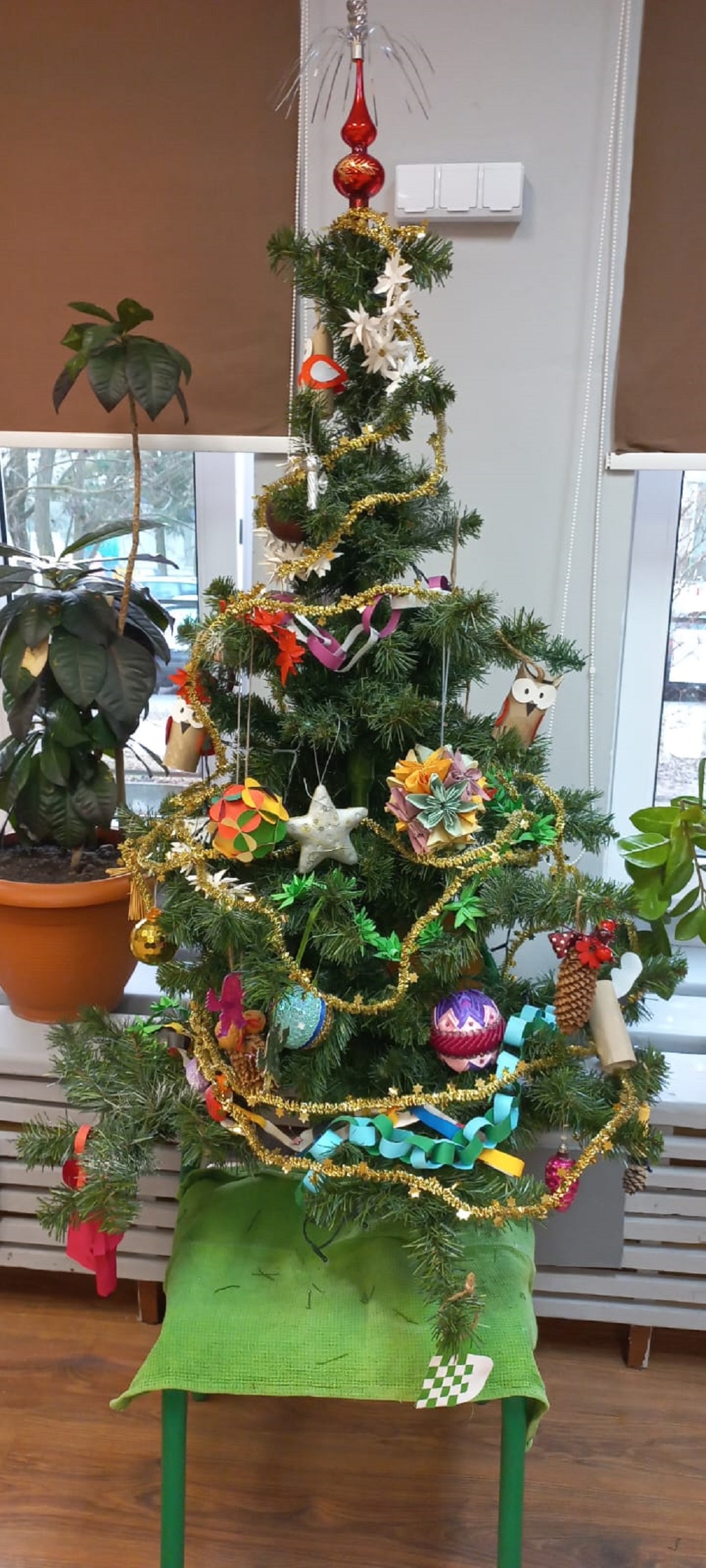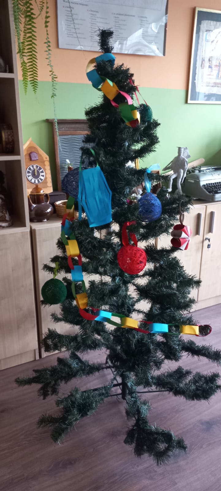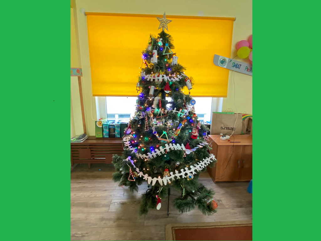 W ramach realizacji projektu „EkoSzkoła – małe kroki do wielkich zmian” uczniowie naszej szkoły zrobili ozdoby na choinkę. Użyli do tego szyszek, łupinek od orzechów, papieru, tkanin z recyklingu itp. Dzięki eko dekorom wszystkie nasze choinki są piękne, a my przy okazji nauczyliśmy się dbać o planetę.