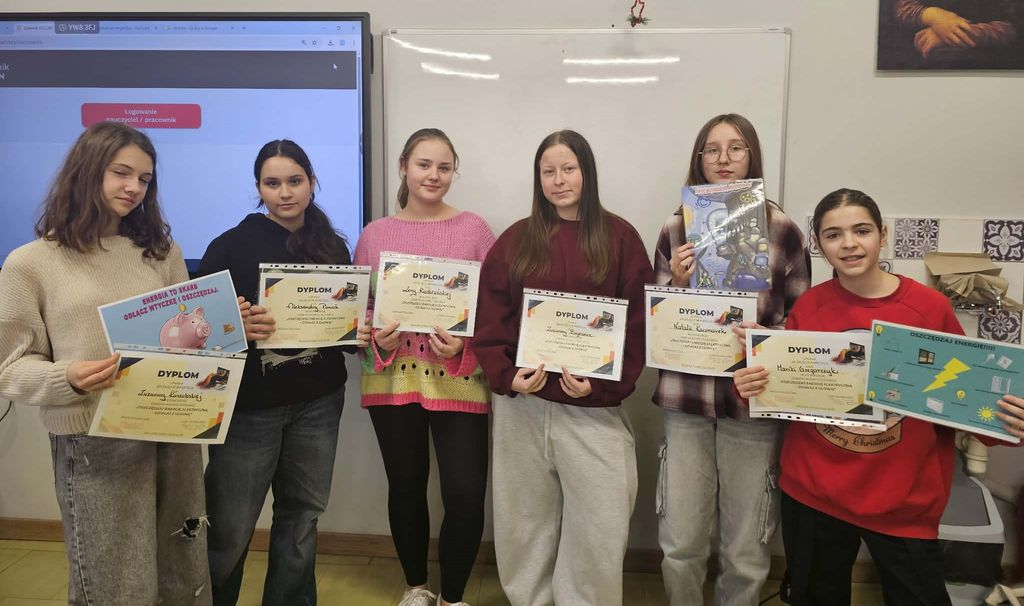 W dniu 17.12.2025 r. odbyło się uroczyste wręczenie nagród dla uczestników konkursu grafiku komputerowej – „Odłącz sprzęt, którego nie używasz”. Serdecznie dziękujemy wszystkim uczestnikom konkursu za zaangażowanie oraz staranne i kreatywne wykonanie prac promujących oszczędzanie energii elektrycznej.