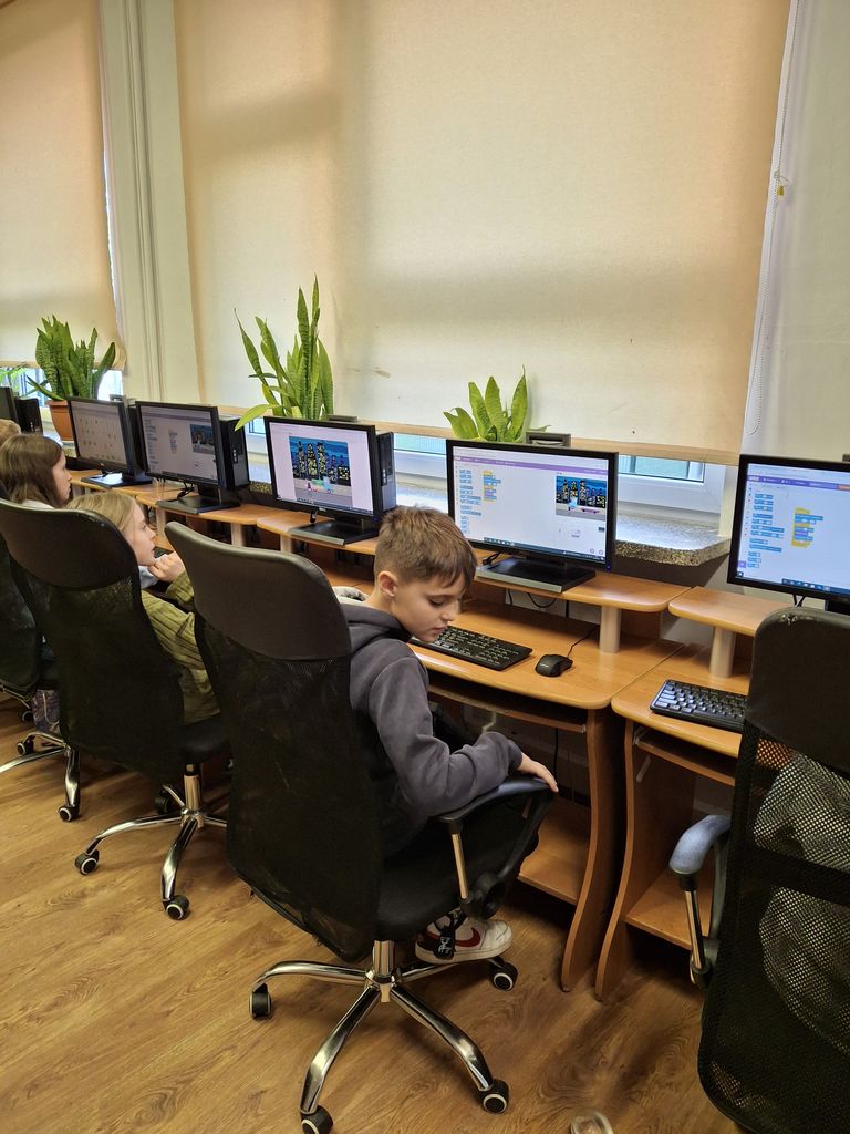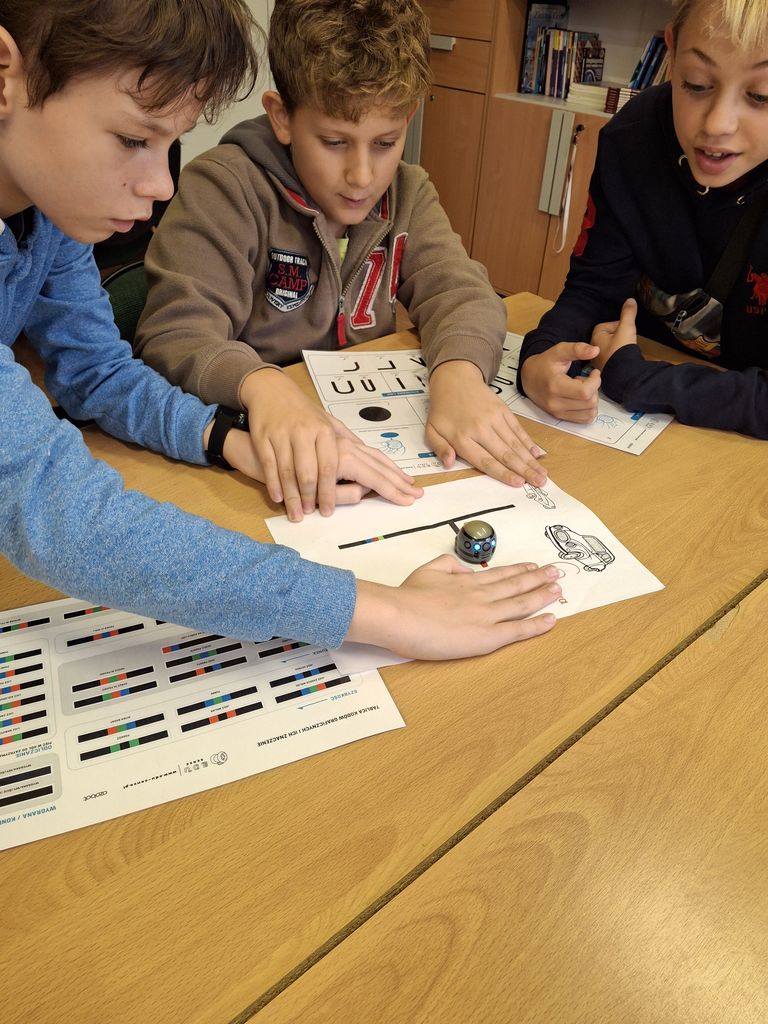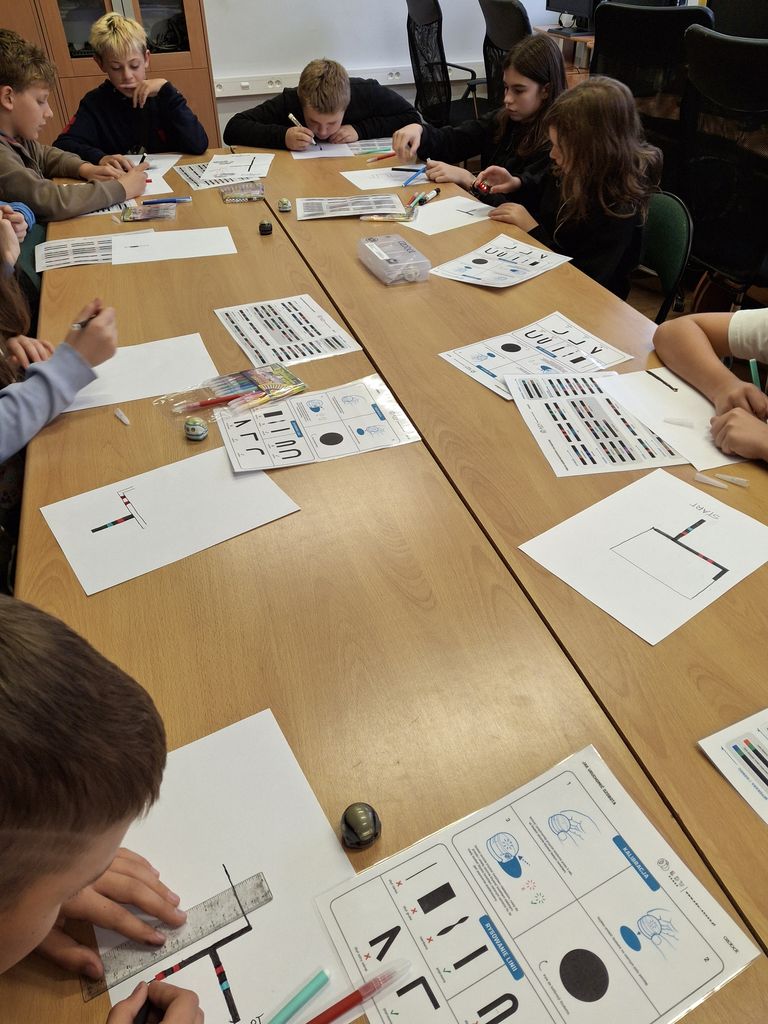 Uczniowie klas piątych uczestniczą w zajęciach dodatkowych z programowania. Zajęcia pozwalają dzieciom rozwijać umiejętności techniczne i kreatywność! Uczą się podstaw programowania w języku Scratch – wizualnym środowisku, które pozwala na tworzenie własnych gier, animacji i interaktywnych projektów w przystępny i zabawny sposób. Dzięki temu dzieci poznają logiczne myślenie, rozwiązywanie problemów oraz podstawy kodowania, nie tracąc przy tym radości z nauki.Proponujemy zajęcia z programowania ozobotów i mBotów – robotów edukacyjnych, które uczą dzieci podstaw robotyki, sterowania oraz algorytmiki. Praca z ozobotami i mBotami rozwija umiejętności analityczne, kreatywność oraz zdolności manualne, a także wprowadza w fascynujący świat technologii i robotyki.