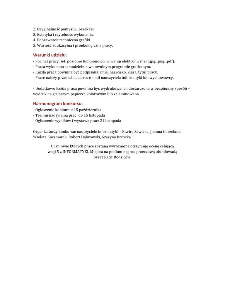 – Prace należy przesłać na adres e-mail nauczyciela informatyki lub wychowawcy.