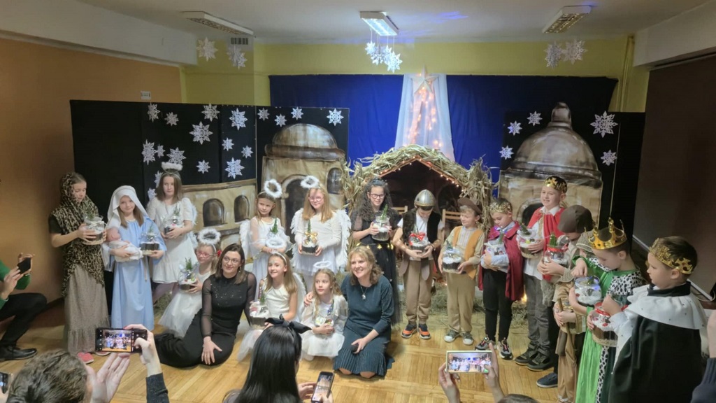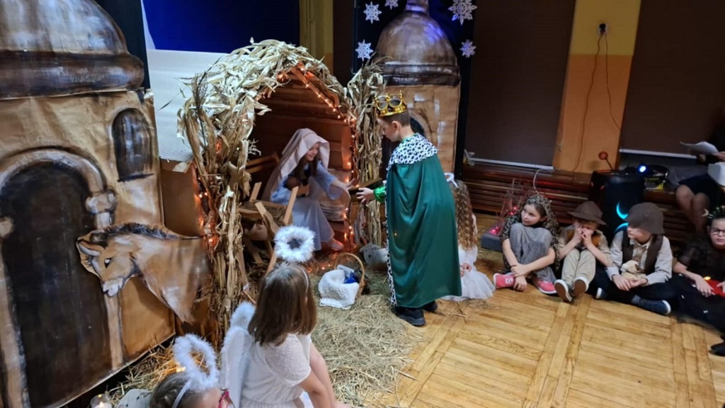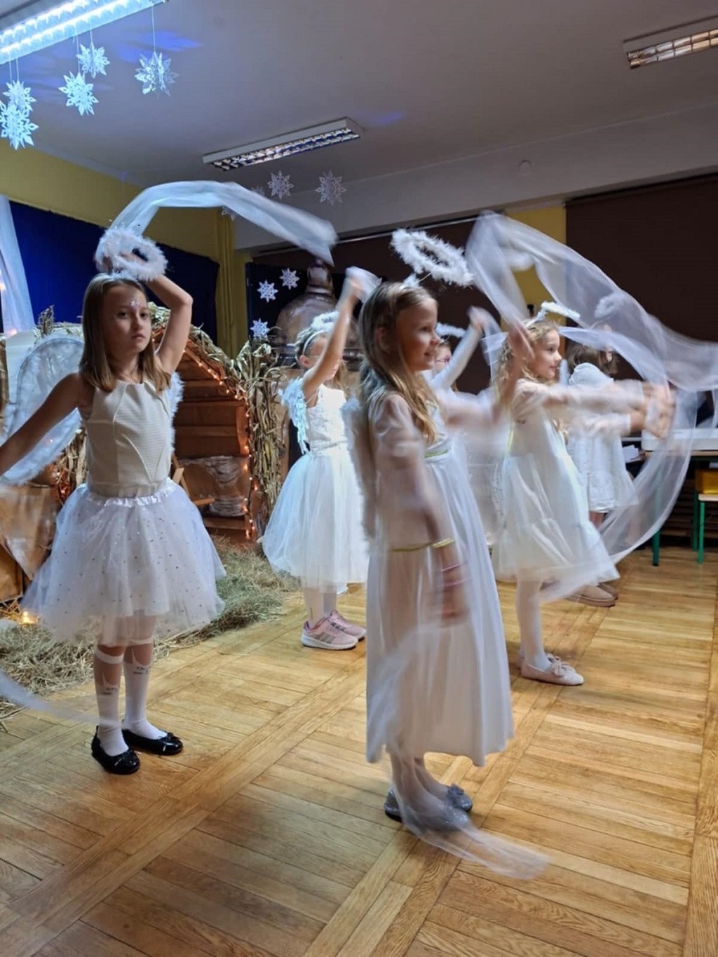 Ze Świętami Bożego Narodzenia wiąże się wiele pięknych tradycji i zwyczajów. Jednym z nich jest odgrywanie inscenizacji o Bożym Narodzeniu zwanych jasełkami. Uczniowie klasy 2a zaprezentowali je rodzicom i swoim koleżankom i kolegom ze szkoły, przypominając w ten sposób wydarzenia sprzed ponad dwóch tysięcy lat, kiedy to w Betlejem narodziło się Boże Dzieciątko. Dzieci wcieliły się w role Maryi i Józefa, Heroda, strażników, pasterzy, aniołów, nocy, trzech króli przybywających złożyć pokłon Jezusowi narodzonemu w ubogiej stajence. Uroku inscenizacji dodały kolędy, które napełniły wszystkich świąteczną radością i sprawiły, że wszyscy poczuli magię zbliżających się świąt.