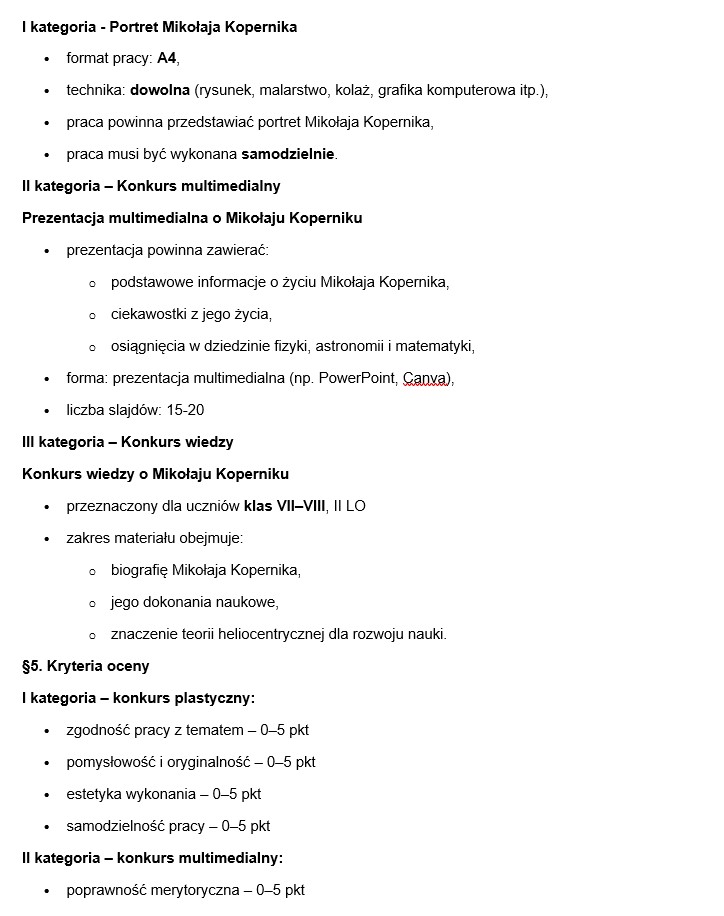 Regulamin konkursu - „Mikołaj Kopernik – życie, pasja i nauka”