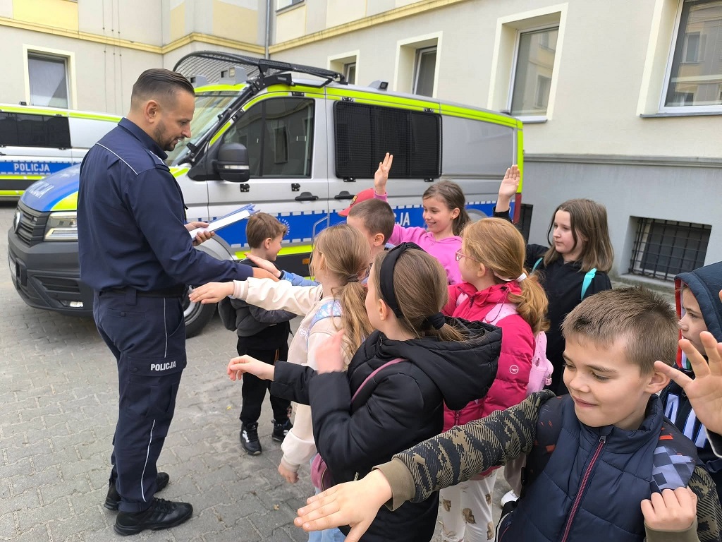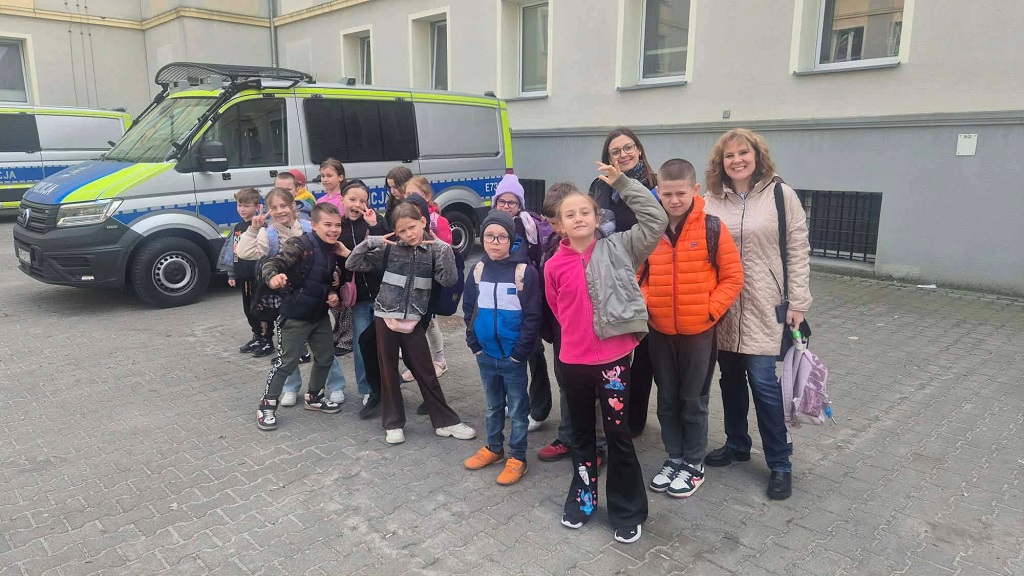 Czy praca policjanta jest ciekawa? Uczniowie klasy 2A już znają odpowiedź! Podczas wizyty w Komendzie Miejskiej Policji w Zielonej Górze mogli zajrzeć tam, gdzie na co dzień trafiają tylko funkcjonariusze. Były policyjne samochody, specjalistyczny sprzęt i mnóstwo ciekawych opowieści o tym, jak wygląda codzienna służba policjantów. Dzieci z ogromnym zainteresowaniem słuchały, zadawały pytania i odkrywały, jak ważna i odpowiedzialna jest praca osób, które dbają o nasze bezpieczeństwo. To była niezwykle ciekawa lekcja – pełna emocji, nowych doświadczeń i wiedzy, którą na pewno zapamiętają na długo. Dziękujemy za inspirujące spotkanie!