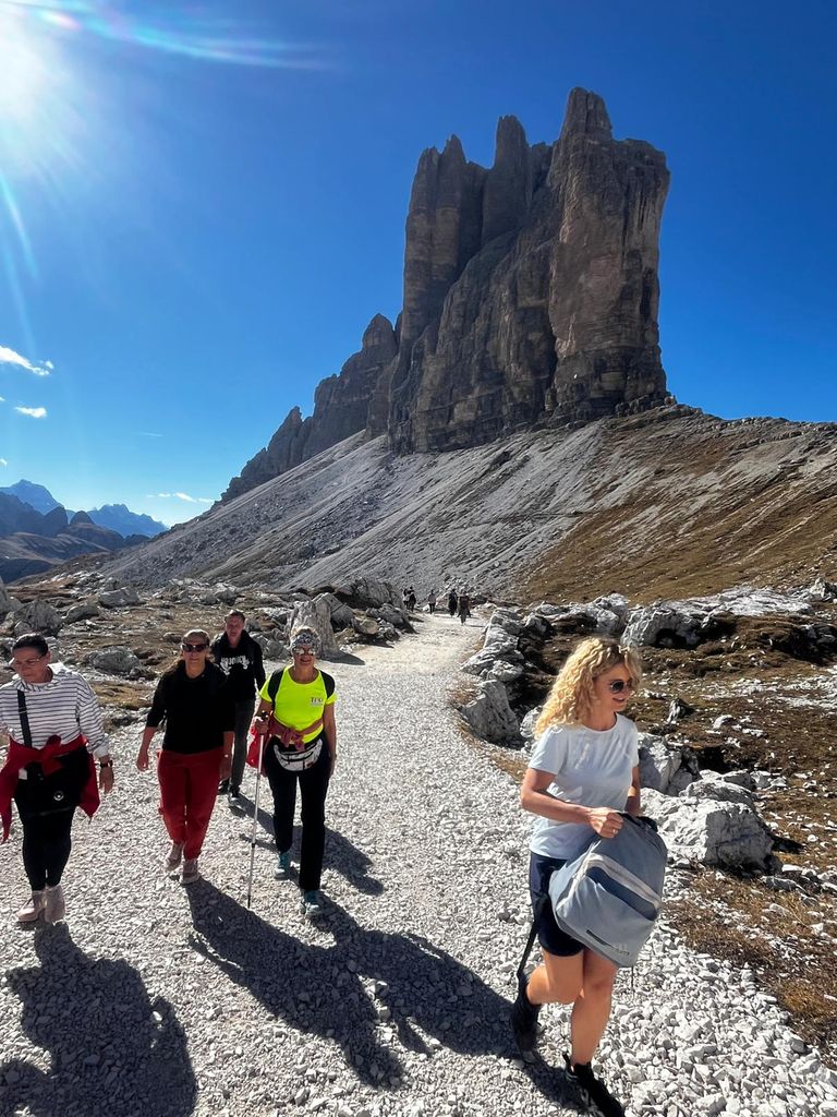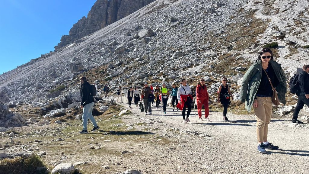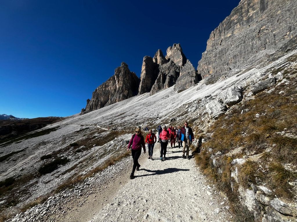 Podczas warsztatów uczestnicy zgłębiali także tajemnice geologii Dolomitów – jednych z najbardziej fascynujących gór świata. Pasmo to zbudowane jest z dolomitu, skały osadowej, która powstała około 250 milionów lat temu na dnie prehistorycznego morza Tetydy. W wyniku ruchów płyt tektonicznych dawne wapienne rafy koralowe zostały wypiętrzone, tworząc ostre szczyty i monumentalne ściany skalne. Nazwa Dolomitów pochodzi od nazwiska francuskiego geologa Déodata de Dolomieu, który jako pierwszy opisał skład tej skały. Podczas trekkingu po masywie Tre Cime di Lavaredo uczestnicy mogli z bliska przyjrzeć się strukturze skał i zobaczyć, jak wietrzenie rzeźbi ich charakterystyczne kształty.